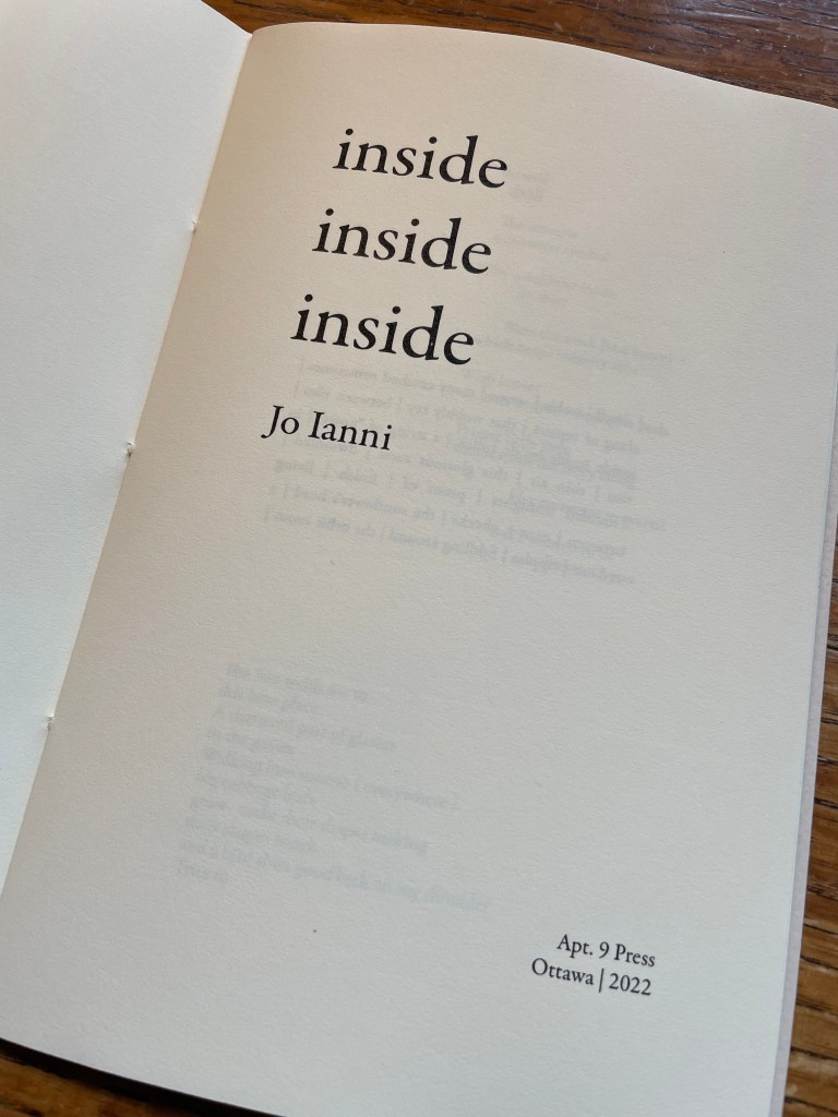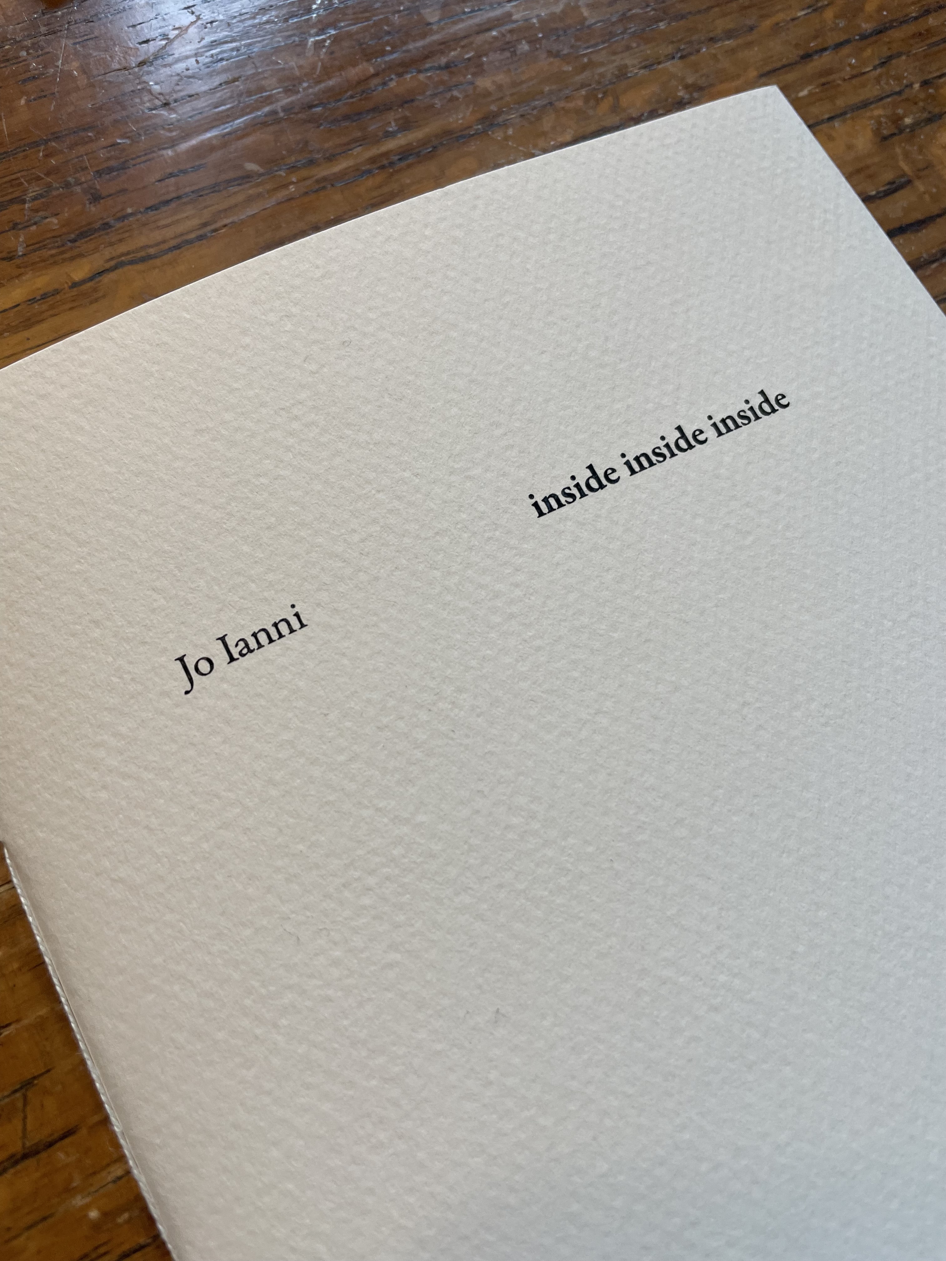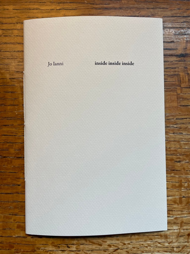 Jo Ianni’s new chapbook, inside inside inside, is complete and will be available to order shortly.