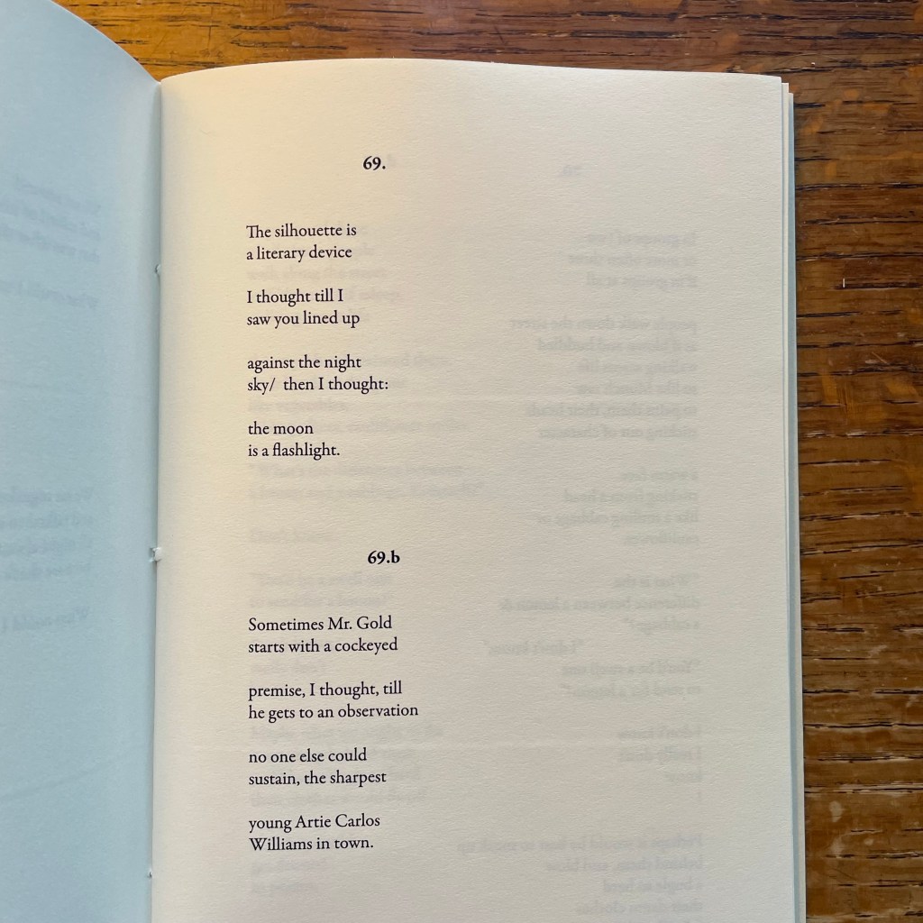 The final installment of Romantic Words, George Bowering’s book-length “poetic exchange” with Artie Gold’s long-lost manuscript of the same title. Ken Norris, in an essay excerpted within the chapbook, describes the project: “Artie gets the first page and George get the second. And what George has going on his page is many things. Sometimes it is commentary. Sometimes it is revision. Sometimes it is translation. Sometimes it is a wholesale rewrite. Sometimes it is a moment in awe.”