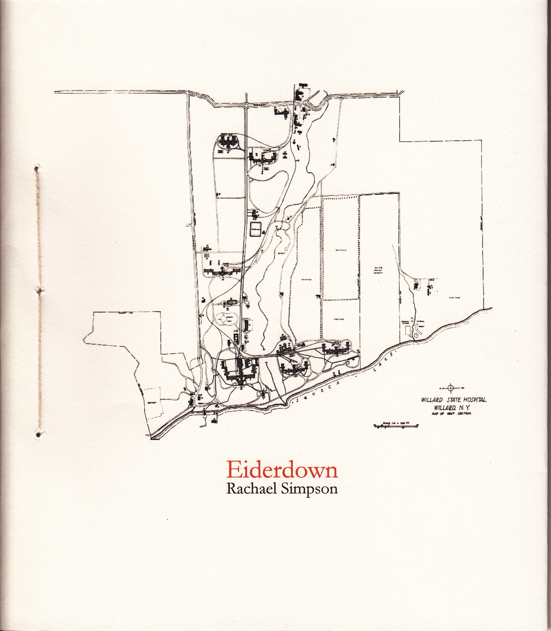 Eiderdown is Rachael Simpson’s debut chapbook. Simpson takes the Willard Asylum and the Willard Suitcase Exhibit as her starting points to ask questions about the responsibility the present holds for objects of the past. What is preserved, and under what conditions? How are stability and loss to be measured? Eiderdown makes it abundantly clear that Rachael Simpson is a poet to pay attention to. Pay attention.